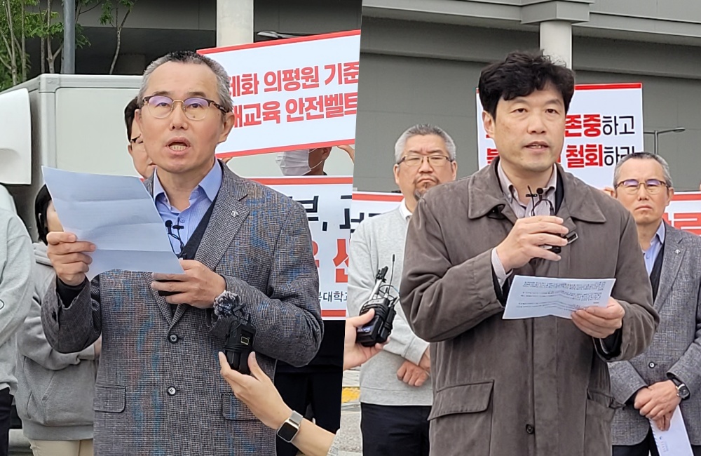 21일 전국의과대학교수 비상대책위원회는 교육부 세종청사를 찾아 불법적 의대 증원과 반헌법적 대학교육 자율성 훼손 규탄 집회를 개최했다.