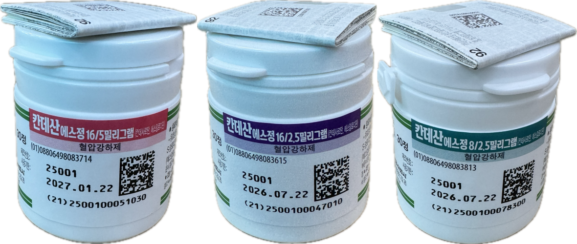 칸데산에스정은 안지오텐신 II 수용체 차단제(ARB)인 칸데사르탄실렉세틸과 칼슘채널차단제(CCB)인 에스암로디핀을 결합한 복합제다. 특히 S-암로디핀은 기존 암로디핀 대비 혈압 강하 효과는 유지하면서도 말초부종 등 부작용 발생 위험을 낮출 수 있다는 장점을 갖고 있다.