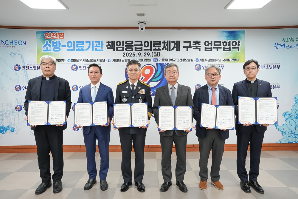 이번 협약에는 인천시 소방본부, 응급의료지원단을 비롯해 가톨릭관동대학교 국제성모병원, 가천대길병원, 인하대병원, 가톨릭대학교 인천성모병원 등 총 6개 기관이 함께했다.