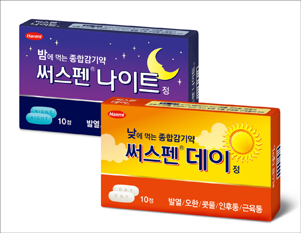 이번에 출시된 제품은 낮에 복용하는 `써스펜데이정`과 밤에 복용하는 `써스펜나이트정`으로 발열, 코막힘, 재채기, 인후통, 오한, 발열, 관절통 등 감기증상 완화에 효과가 뛰어나다.