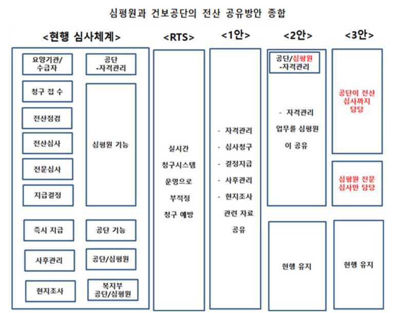 실제 기획재정부는 건보공단과 심평원 등 공공기관에 대한 대대적인 기능 점검을 시행 중이며, 올해 상반기 내로 건보공단과 심평원의 기능 조정을 시행할 방침이다.