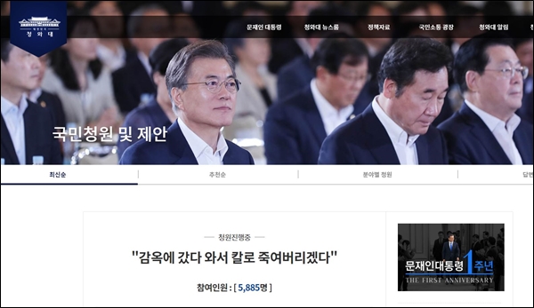 아울러 "감옥에 갔다 와서 칼로 죽여버리겠다"는 제목의 청원에는 청원시작 하루만에 5,885명(7월 4일 10시 기준)이 찬성의 뜻을 보였다.