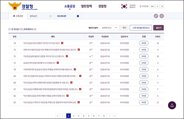 나아가 사이버 경찰청 자유게시판에는 사건이 발생한 익산 응급실 담당 경찰에 대한 성토글들이 대량으로 올라왔다.