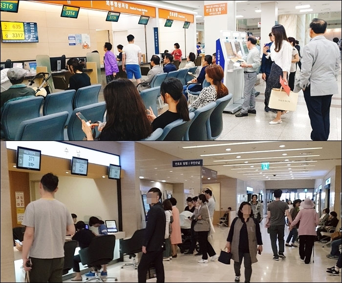 ▲ 환자들로 붐비는 (위)서울아산병원, (아래)서울성모병원