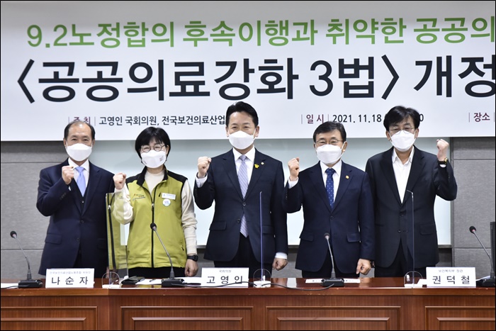 이 같은 입법활동에 이어 민주당은 지난 18일에는 전국보건의료노조와 함께 '9.2 노정합의 후속이행과 취약한 공공의료확충을 위한 공공의료 강화 3법 개정 토론회'를 개최해 해당 문제를 공론화했다.