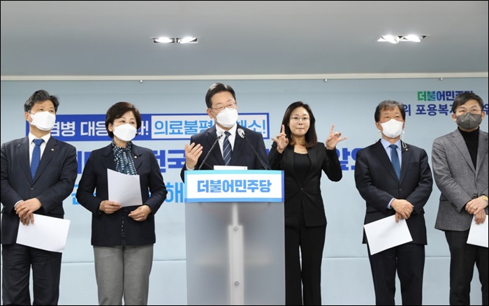 지난 12월 31일 더불어민주당 이재명 후보가 코로나19 거점전담병원으로 지정돼 병상 확충 공사가 한창인 현장을 찾아 '공공의료 확충' 공약을 발표했다.