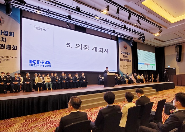 박성민 의협 대의원회 의장은 개회사를 통해 "어렵고 힘든 코로나와의 전쟁이 서서히 그 끝을 맞이해 가고 있지만 주위의 의료 환경은 우리가 진료에만 힘쓸 수 있도록 내버려 두지는 않는 것 같아 안타깝다"고 전했다.