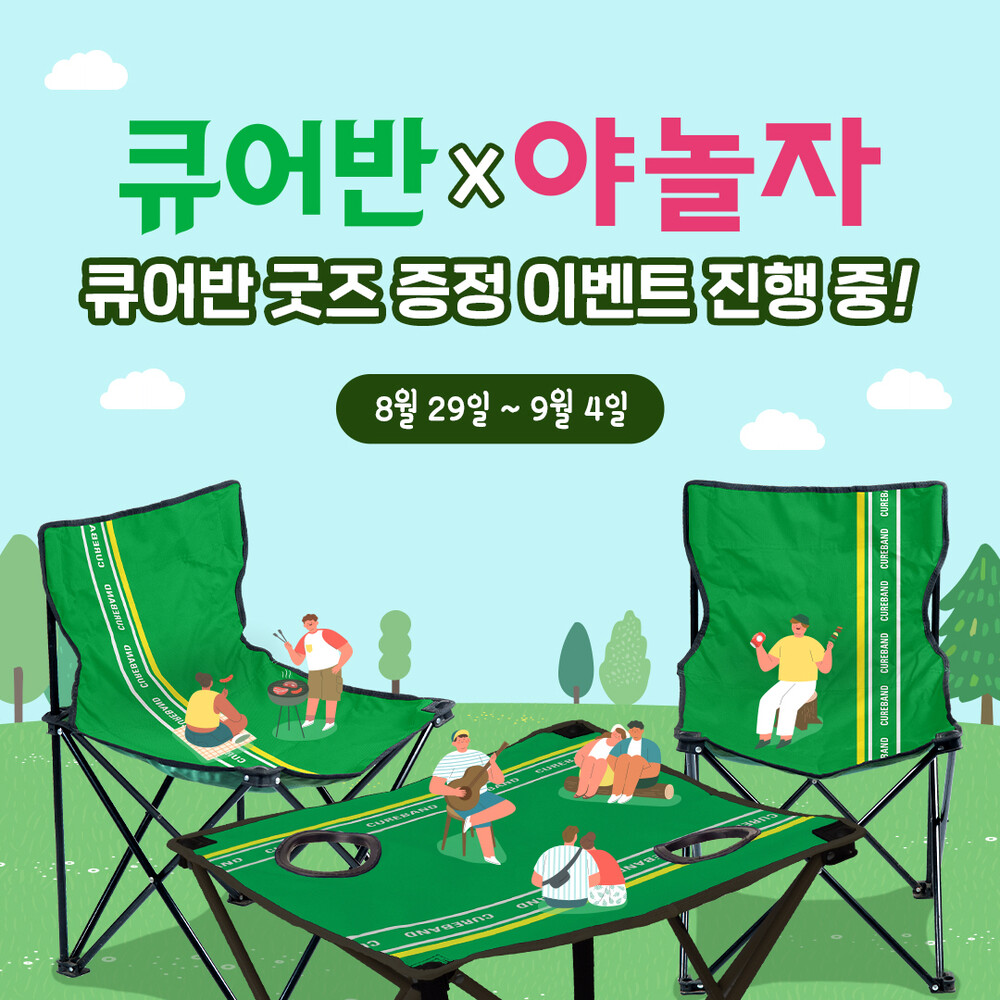 특히 선착순으로 캠핑 테이블과 의자로 구성된 큐어반 캠핑 굿즈 세트를 증정한다.