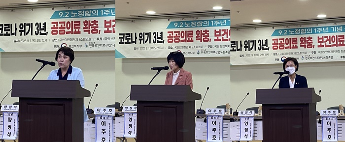 1일 노정합의 1주년을 기념해 국회에서 열린 '공공의료 확충, 보건의료인력 처우개선 어디까지 왔나' 토론회에서 여야 의원들은 의사 인력 확충에 의지를 나타냈다.