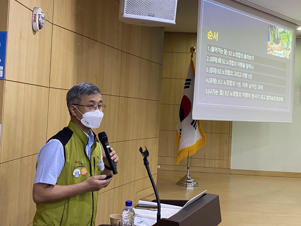 이밖에 노정합의 이행이 현장과 지자체로 확산할 필요가 있다고 제안했다.