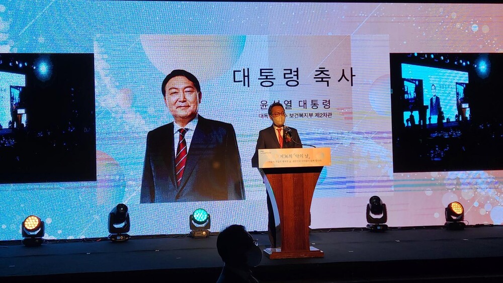 장병원 한국제약바이오협회 부회장도 "이번 약의 날 기념식은 의약품의 소중함을 되짚어보는 매우 뜻깊은 자리"라며 "코로나19 팬데믹 상황에서 지구촌은 의약품의 중요성을 절감했다. 백신과 치료제 확보, 필수의약품의 원활한 공급은 개개인의 건강을 넘어 국가의 보건안보 차원의 문제로 인식되고 있다"고 밝혔다.