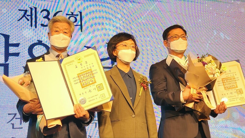 ▲ 대통령 표창 : 이상원 유영제약 회장, 유희원 부광약품 대표이사, 이명구 한림대 춘천성심병원 교수