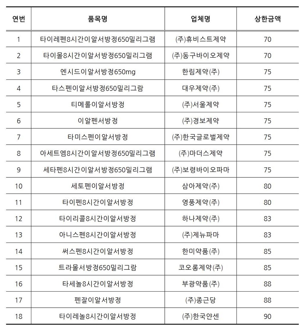 [메디파나뉴스 = 이호영 기자] 오는 12월 1일 약가 인상되는 조제용 아세트아미노펜 18품목에 대한 약국의 서류상 반품이 2개월간 한시적으로 시행된다.
