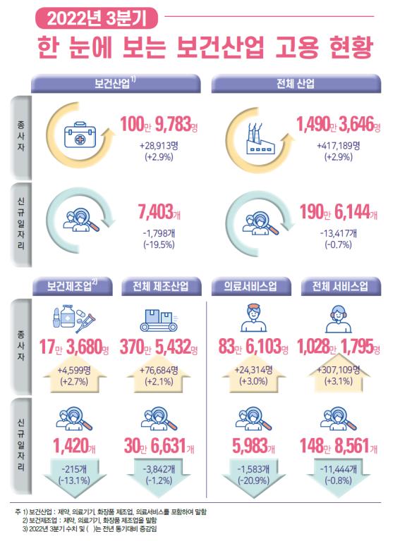 한편 2022년 3/4분기 보건산업 분야 신규 일자리 수는 7,403개 창출됐다.