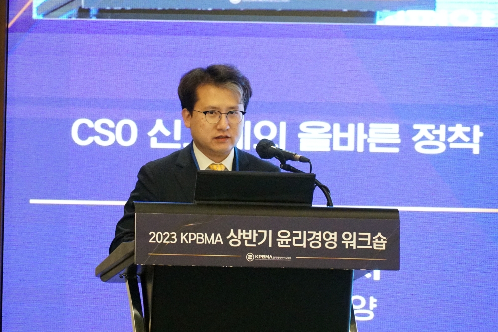 법무법인 태평양 이시항 변호사는 지난 26일 한국제약바이오협회 윤리경영워크숍에서 'CSO 신고제의 올바른 정착'을 주제로 발표했다.