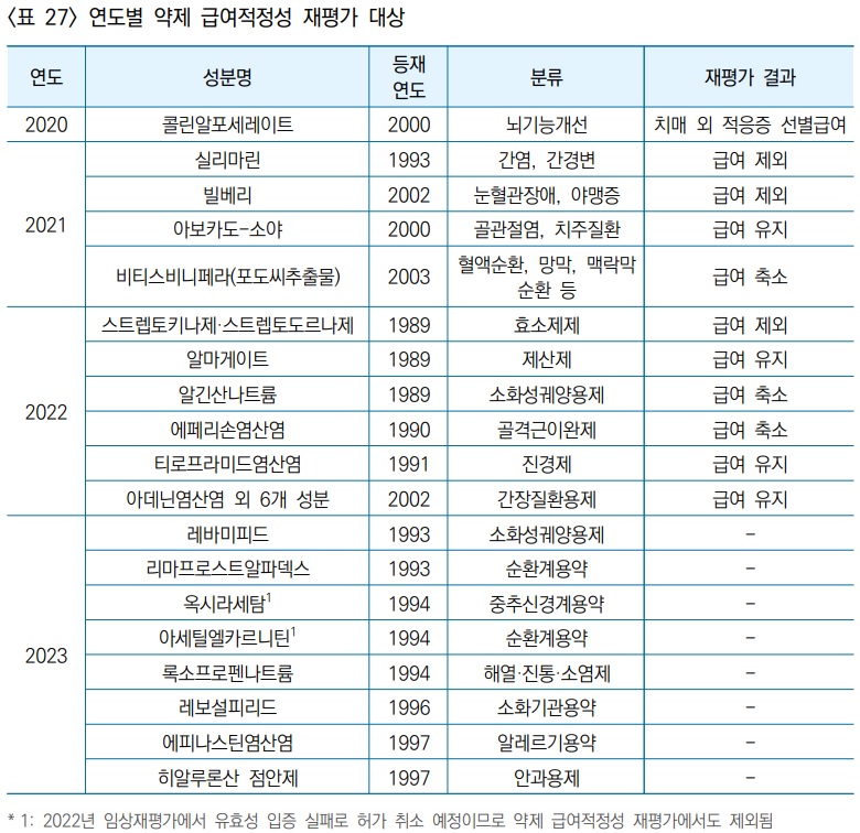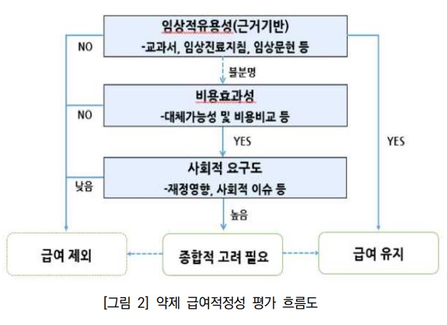 이 맥락에서 약제 급여적정성 재평가 제도는 건강보험체계 내에서 의약품 사용의 적정성을 높이고 약제 급여 지출의 효율을 제고할 수 있다.