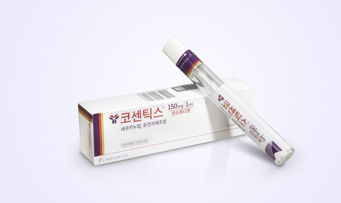한편 코센틱스는 국내 최초의 인터루킨-17A 억제제로 2015년 9월 광선요법 및 전신요법을 필요로 하는 중등도 및 중증의 성인 판상 건선 치료제로 식품의약품안전처의 승인을 받았다.