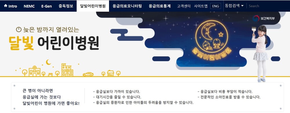 [메디파나뉴스 = 박으뜸 기자] 정부가 응급실 과밀화 및 환자 불편·비용 부담을 해소하기 위해 '달빛어린이병원'을 100개소까지 늘릴 방침이다.