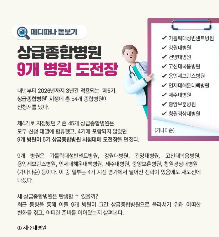 7일 제주대병원과 제주도 등에 따르면, 이번 5기 상급종합병원 지정평가 신청은 사실상 '도전'에 가까운 것으로 나타났다.