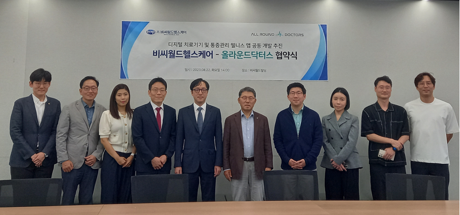 비씨월드제약 자회사 비씨월드헬스케어(대표 홍성한)가 올라운드닥터스(대표 곽성동)와 디지털 치료기기 및 웰니스 어플리케이션 공동 개발 협약을 체결했다. 이를 통해 양사는 암성 통증관리 및 조절을 돕는 디지털 치료기기를 개발·공급할 계획이다.