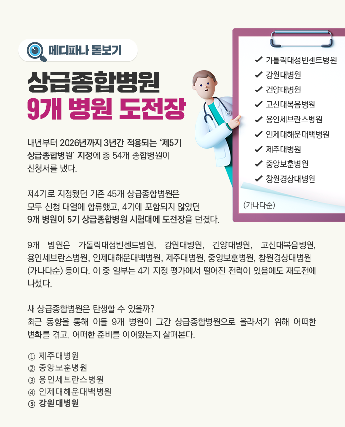 강원대병원이 상급종합병원으로 지정되면 수도권으로 원정 진료를 가는 중증 환자 치료를 지역 내에서 전담해 책임질 수 있게 된다. 환자로서도 지역 내에서 시의 적절한 치료를 제공받을 수 있게 되는 등 지역안전망이 강화될 수 있다.