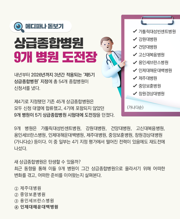 [메디파나뉴스 = 박으뜸 기자] 인제대학교 해운대백병원이 또 5기 상급종합병원 지정에 도전한다.