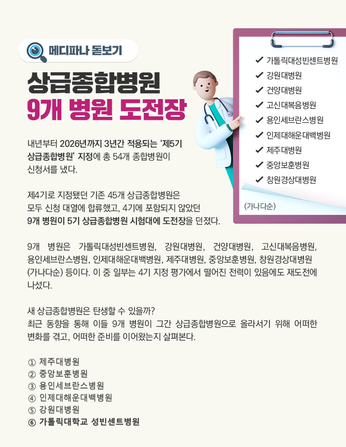 이에 가톨릭대학교 성빈센트병원은 올해 지정되는 '5기 상급종합병원'에 재차 도전장을 냈다.