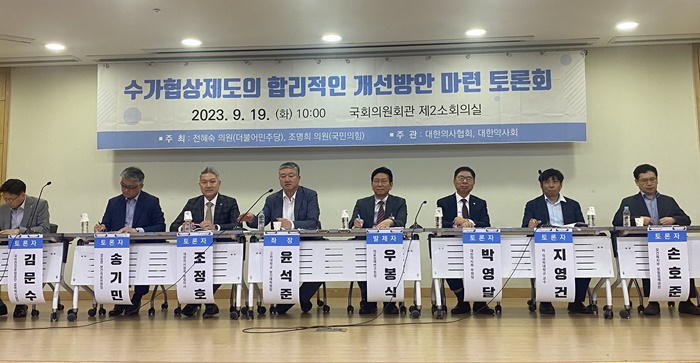 19일 국회 국민의힘 조명희 의원과 더불어민주당 전혜숙 의원이 주최하고 대한의사협회와 대한약사회가 주관한 수가협상제도 합리적 개선방안 마련 토론회에서 의약단체는 수가협상이 불합리한 구조라는 데 인식을 같이했다.