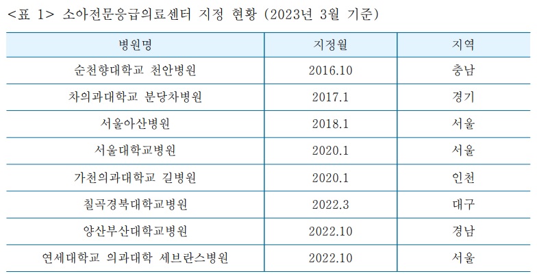 연구팀은 "소아응급의료의 정부 지원에 대한 포괄적인 금액을 제시하는 응급의료법 개정 혹은 소아응급의료 특별법 등의 입법이 우선 필요하다"고 지적했다.
