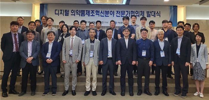 최근 '디지털기반 의약품 제조혁신 센터(DMIC)'를 중심으로 산·학·연의 23개의 기관에서 국가연구과제를 수행하는 기존의 연구진에 더해 이들의 연구를 지원해 줄 수 있는 15명의 전문가들이 협의체를 구성하고, 발대식을 개최했다.