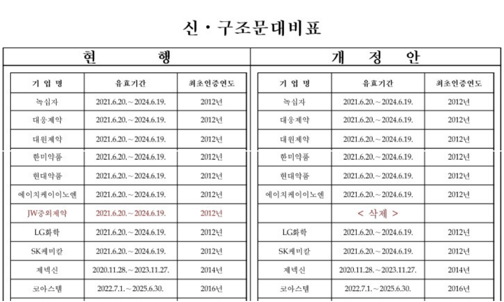 보건복지부가 2일 고시한 '혁신형 제약기업 인증현황'에 따르면, JW중외제약이 목록에서 삭제됐다.