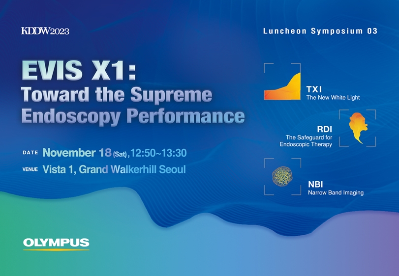 올림푸스한국은 이번 KDDW 기간에 부스 참여를 통해 자사의 최신 내시경 시스템인 '이비스 엑스원(EVIS X1)'과 처치구 제품 ‘볼틱캐치브이 결석 제거 바스켓(VorticCatchV Stone Retrieval Basket)’을 선보인다.