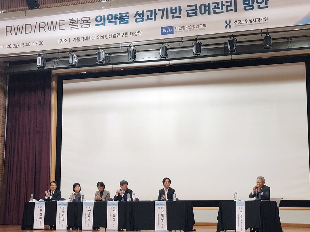 건강보험심사평가원과 대한항암요법연구회는 지난 20일 가톨릭대성의교정 의생명산업연구원 대강당에서 '실제임상자료(RWD)/실제임상근거(RWE) 활용을 통한 의약품 성과기반 급여관리 방안'을 주제로 '의약품 성과기반 급여관리 방안 공청회'를 개최했다.