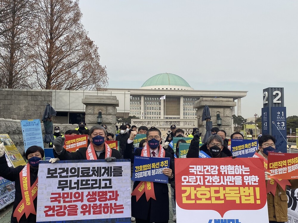 간무협은 "재발의하는 간호법은 단어만 바꾼 눈속임 꼼수에 불과하다"며 "86만 간호조무사를 기만하고 조롱하는 행위"라고 비판했다.