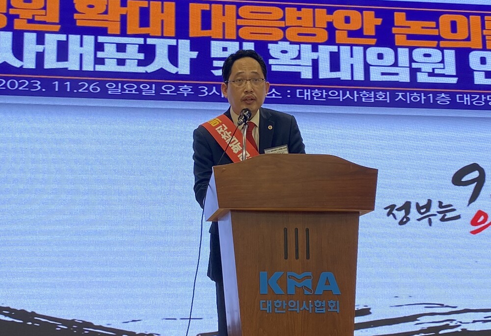 최 전 회장은 "우리는 현 정부 일방적 9.4 의정합의 파기에 맞닥뜨려 더 미룰 것도 없는 벼랑 끝에 서있다"며 "범의료계적·범사회적 투쟁은 선택할 수 있는 것이 아니라 마지막 생명줄을 위한 필사적 운명"이라고 말했다.