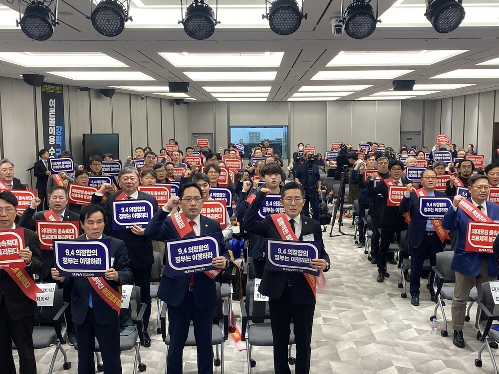 최 전 회장은 "9.4 의정합의는 정부가 전문가 단체인 의협과 국민 앞에서 합의문을 선포한 약속"이라며 "일방적 파기를 진행하는 상황에서 의료계는 뜻을 같이하는 국민과 합심해 강력히 투쟁할 수밖에 없다"고 강조했다.