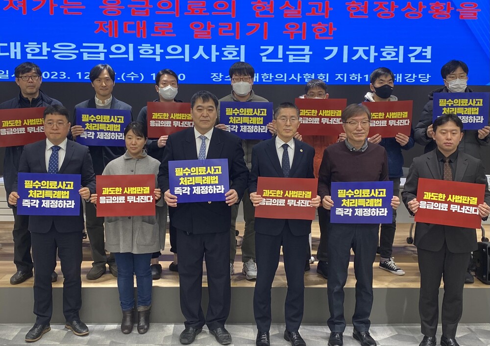 이를 법적으로 보장하기 위해 응급의료 사고처리 특례법과 과실치사상에서 형사처벌 면제법안을 즉각 마련할 것도 촉구했다.