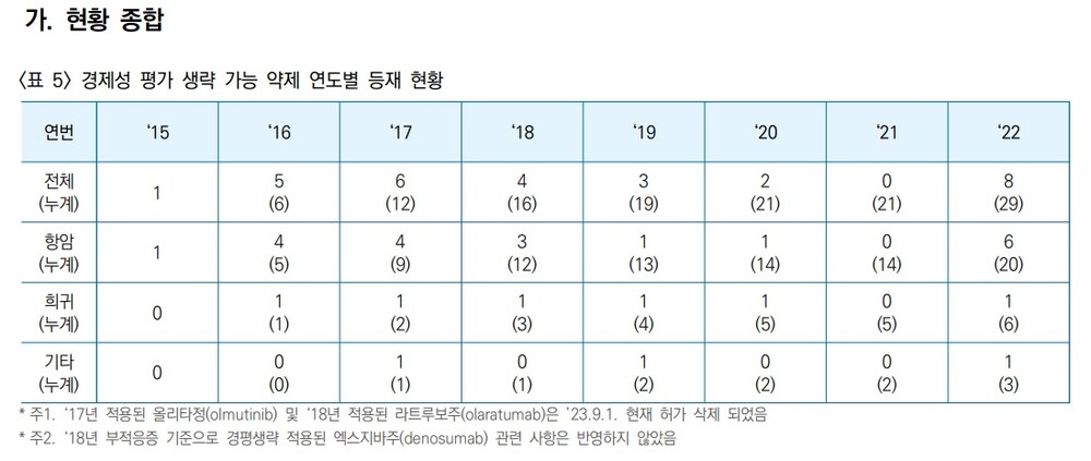 건강보험심사평가원의 '의약품 경제성평가 자료 제출 생략 제도 개선방안 마련 연구'에 따르면, 경평 생략 약제 제도는 환자의 의약품 접근성 향상에 기여한 것이 분명했다.