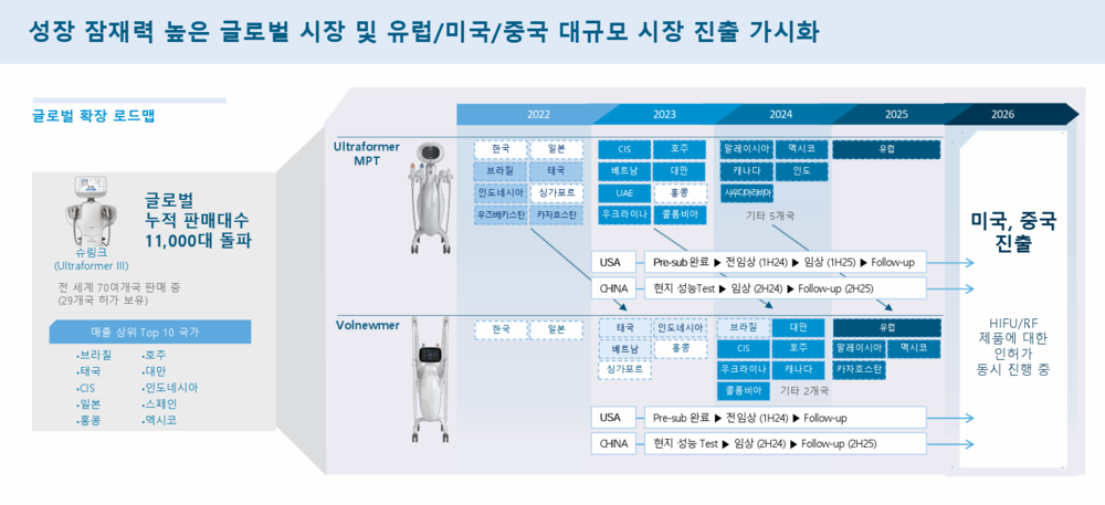 2026년 미국과 중국, 유럽 규제기관의 인허가 획득을 통해서 메디컬 에스테틱 대형 시장에 본격 진출한다는 각오다.