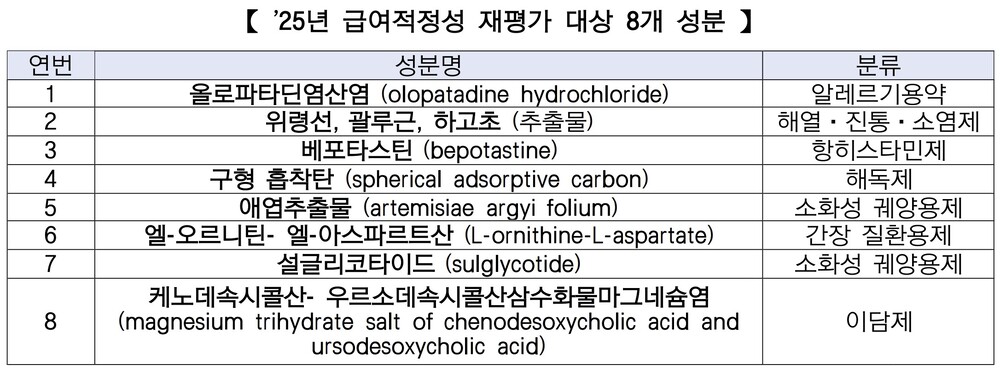 한편, 복지부는 약품비 지출 효율화를 위해 이미 등재된 약제 중 청구금액 등 요건에 따라 일부 성분을 대상으로 선정해 2020년부터 순차적으로 급여적정성 재평가를 시행하고 있다.