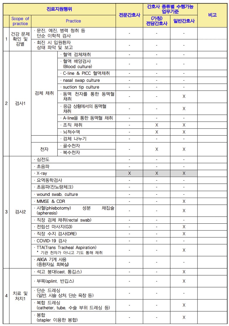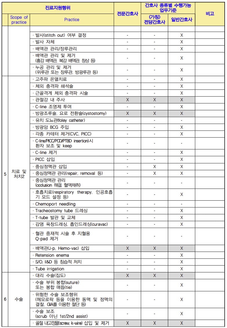 일반 간호사는 기존과 거의 비슷한 수준이지만, 전담간호사는 전문간호사에 준할 만큼 수행가능한 업무 폭이 넓다.