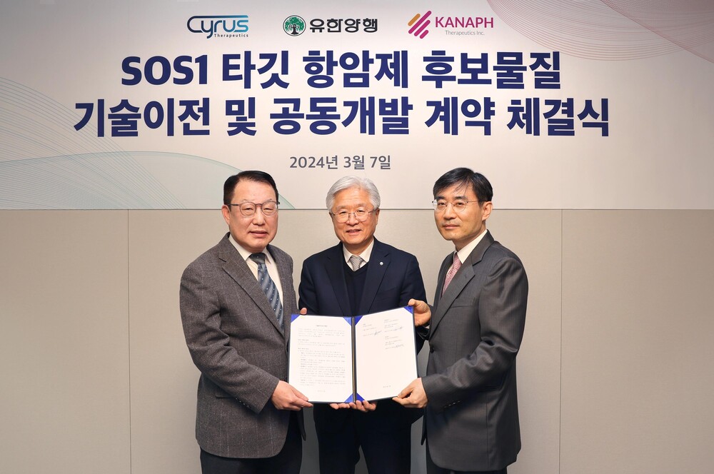 사이러스와 카나프가 개발하고 있는 SOS1저해제는 지난 해 10월 국가신약개발사업단(단장 박영민)이 주관하는 '2023년 제3차 국가신약개발사업 신약 R&D 생태계 구축 사업' 지원 과제로 선정된 바 있다. 지원 과제 선정으로 양사는 이후 2년간 국가신약개발사업단의 지원을 받아 2025년 하반기까지 1상 임상시험계획(IND) 승인을 목표로 비임상 연구를 진행하고 있다고 밝혔다.