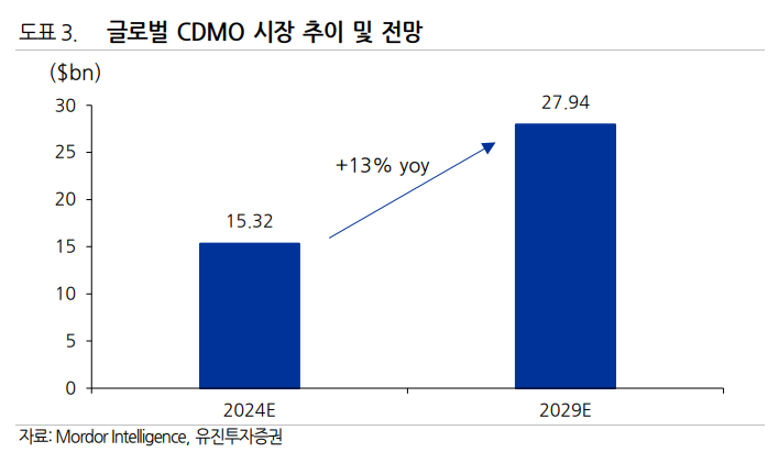 25일 유진투자증권 리서치에 따르면, 빅파마들은 자체 생산 시설 확대를 위한 CAPEX(자본적 지출) 투자와 안정적 공급이 가능한 CDMO 확보 중 양자택일을 해야 하는 상황이다.