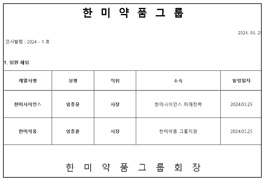 한미그룹이 3월 25일자로 한미사이언스 임종윤 사장과 한미약품 임종훈 사장을 해임했다.