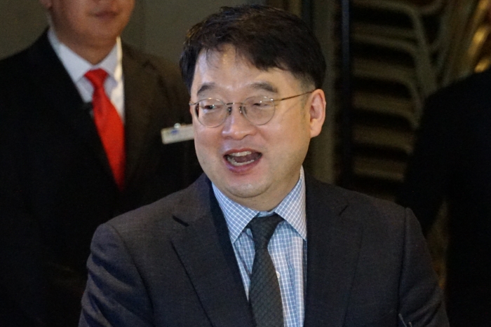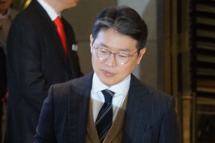 글자크기 설정 가 가 기사의 본문 내용은 이 글자크기로 변경됩니다. 한미사이언스 주주총회장에 입장하는 임종윤 사장(위)과 임종훈 사장. OCI 이우현 회장이 한미사이언스 주주총회장에 입장하고 있다.