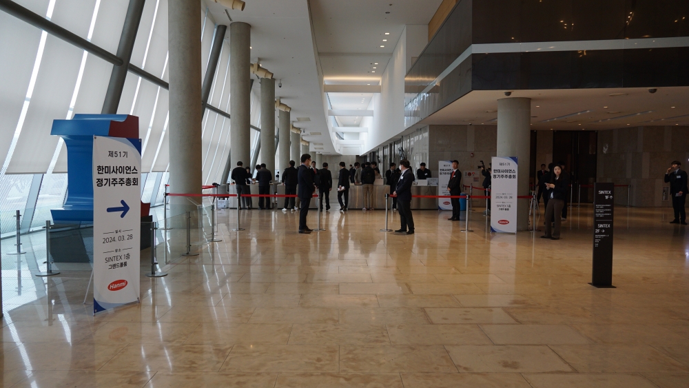 한미사이언스는 28일 오전 9시 경기도 화성시 신텍스 1층 그랜드볼룸에서 제51기 정기 주주총회를 개최했다.