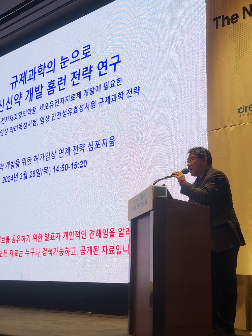 또한 지난해 FDA의 허가를 받은 유전자 가위 치료제인 '카스게비'를 예시로 들며, 국내에서 개발 중인 ADC, CAR-T, 유전자 치료제 등의 치료제가 허가받지 못하는 상황을 고찰했다. 그리고 이 같은 상황을 해결하기 위해서는 임상 승인, 품질 임상과 관련된 인프라 구성 등이 중요하다고 강조했다.
