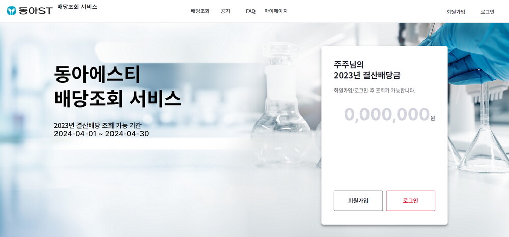 동아에스티 주주들은 간단한 회원 가입과 주주 인증을 통해 배당 내역 확인이 가능하다. 지난해 결산 배당금 조회 기간은 오는 30일까지이며, 배당금은 4월 19일 지급될 예정이다.