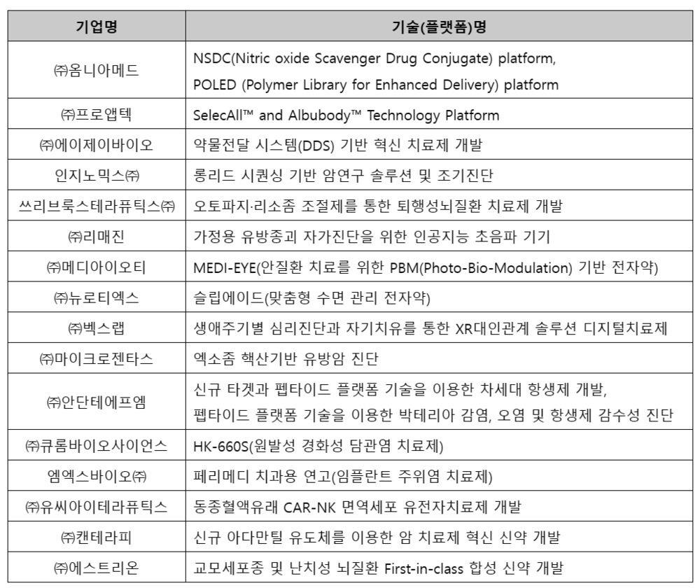 이번 투자포럼의 목적은 국내 제약·바이오 기업 및 벤처 캐피털 등 투자기관에 유망기술 또는 플랫폼을 자체 보유하고 있는 바이오벤처·스타트업과의 네트워킹 장을 마련해 우수 기술 발굴, 투자, M&A 등 상생협력 및 정보교류 기회를 제공하기 위함이다. 벤처·스타트업 16개사가 참여해 기업별 보유 역량과 연구개발 파이프라인 소개 및 제휴·협력 방안에 대한 IR을 진행한다.