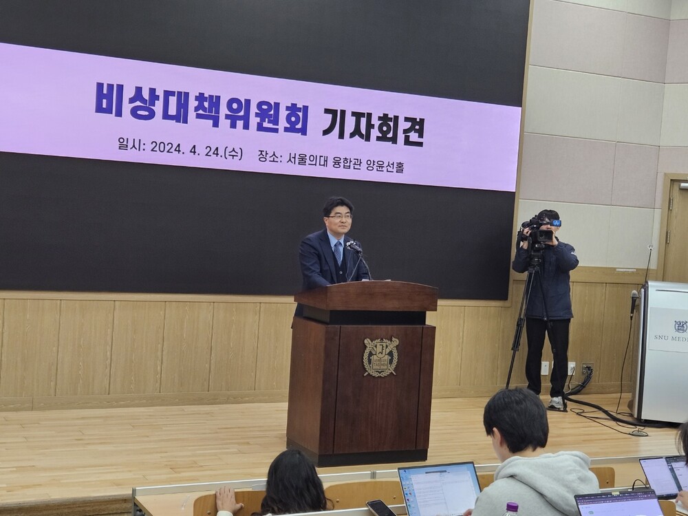 서울의대/서울대병원 비대위는 24일 서울대학교 의과대학 융합관 양윤선홀에서 기자회견을 열고, 어제(23일) 개최한 '제5차 서울대학교 의과대학·서울대학교병원 전체 교수 비상총회' 결과를 발표했다.